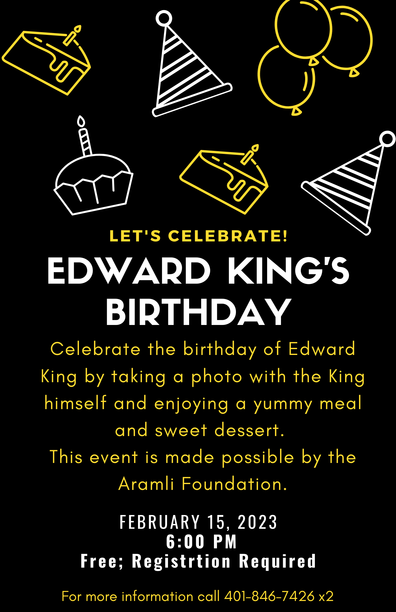 2023-02-15 18:00 2023-02-15 19:30 America/New_York Edward King Birthday Event