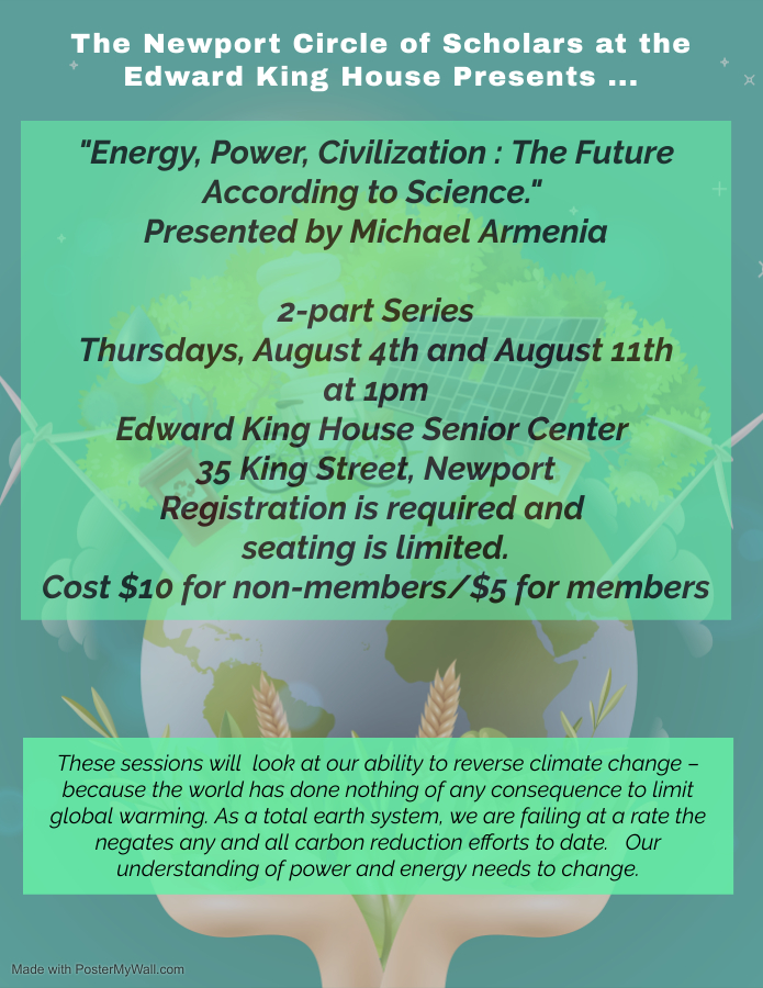 A few science humanists predicted hydrocarbon pollution far before public awareness and told us how to stop it and reverse it. Institutions in the USA did not listen – largely because most scientists and engineers live in the bubble of self- preservation of their livelihoods in national defense or profit industries which ignored “externalities”. These sessions will look at our ability to reverse climate change – because the world has done nothing of any consequence to limit global warming. As a total earth system, we are failing at a rate the negates any and all carbon reduction efforts to date. Our understanding of power and energy needs to change.